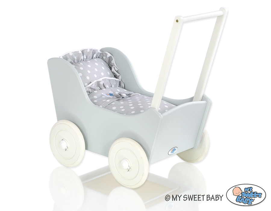 Harmaa  Puiset nuken vaunut (valko-harmaa ) Valkoinen Harmaa
