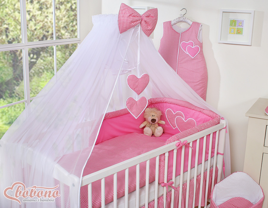 Hyttysverkko vauvan sänkyyn - Hanging Hearts Vaaleanpunainen Ruutukuvio Sifonki