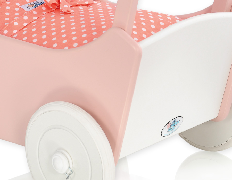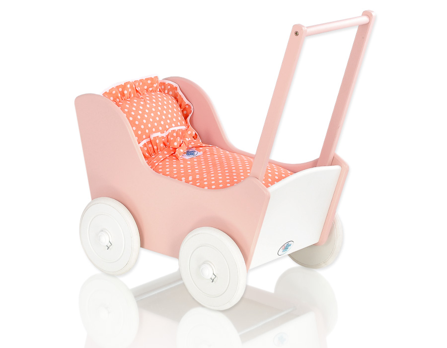 Täydellinen lahja pikkuiselle tytölle (tai pojalle!). Nuken vaunut on yksi suosituimmista lasten toiveleluista. Valmistettu turvallisista materiaaleista ja maalattu ekologisella maalilla.