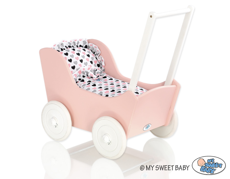 Jauhe vaaleanpunainen Puinen leluvaunu Valkoinen