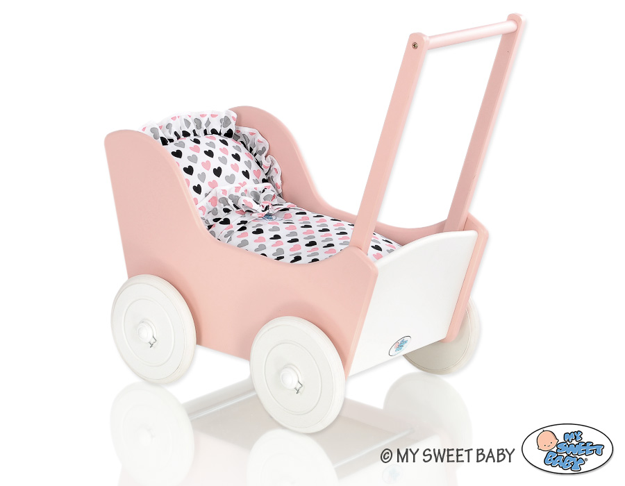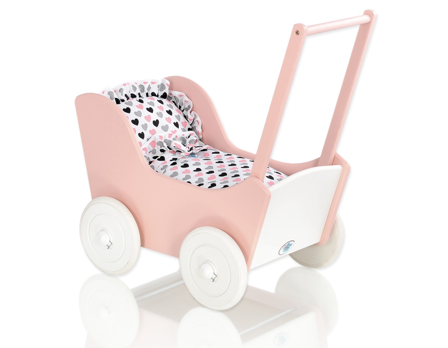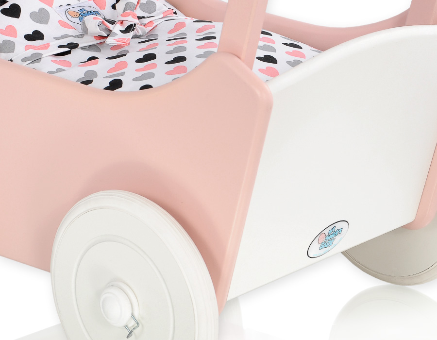 Jauhe vaaleanpunainen puiset nuken vaunut Valkoinen