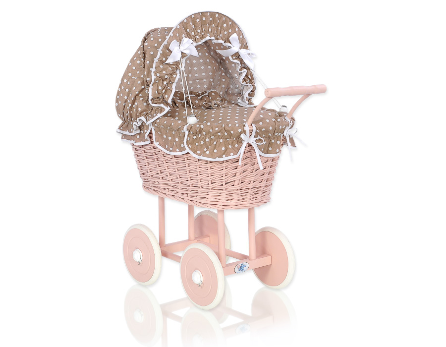 Jauhe Vaaleanpunainen punottu nuken vaunu korikehdollaJauhe Vaaleanpunainen punottu nuken vaunu korikehdollaJauhe Vaaleanpunainen punottu nuken vaunu korikehdolla