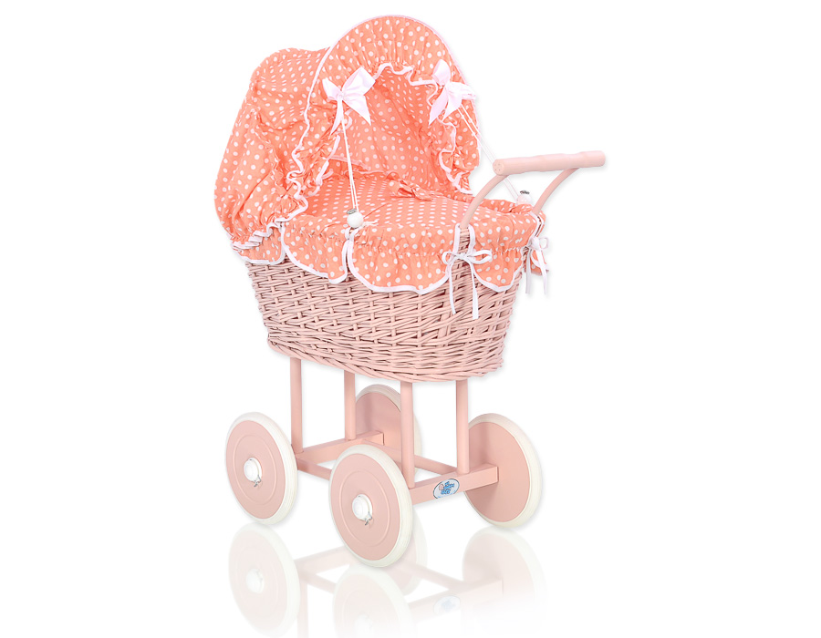 Jauhe Vaaleanpunainen punottu nuken vaunuJauhe Vaaleanpunainen punottu nuken vaunuJauhe Vaaleanpunainen punottu nuken vaunu