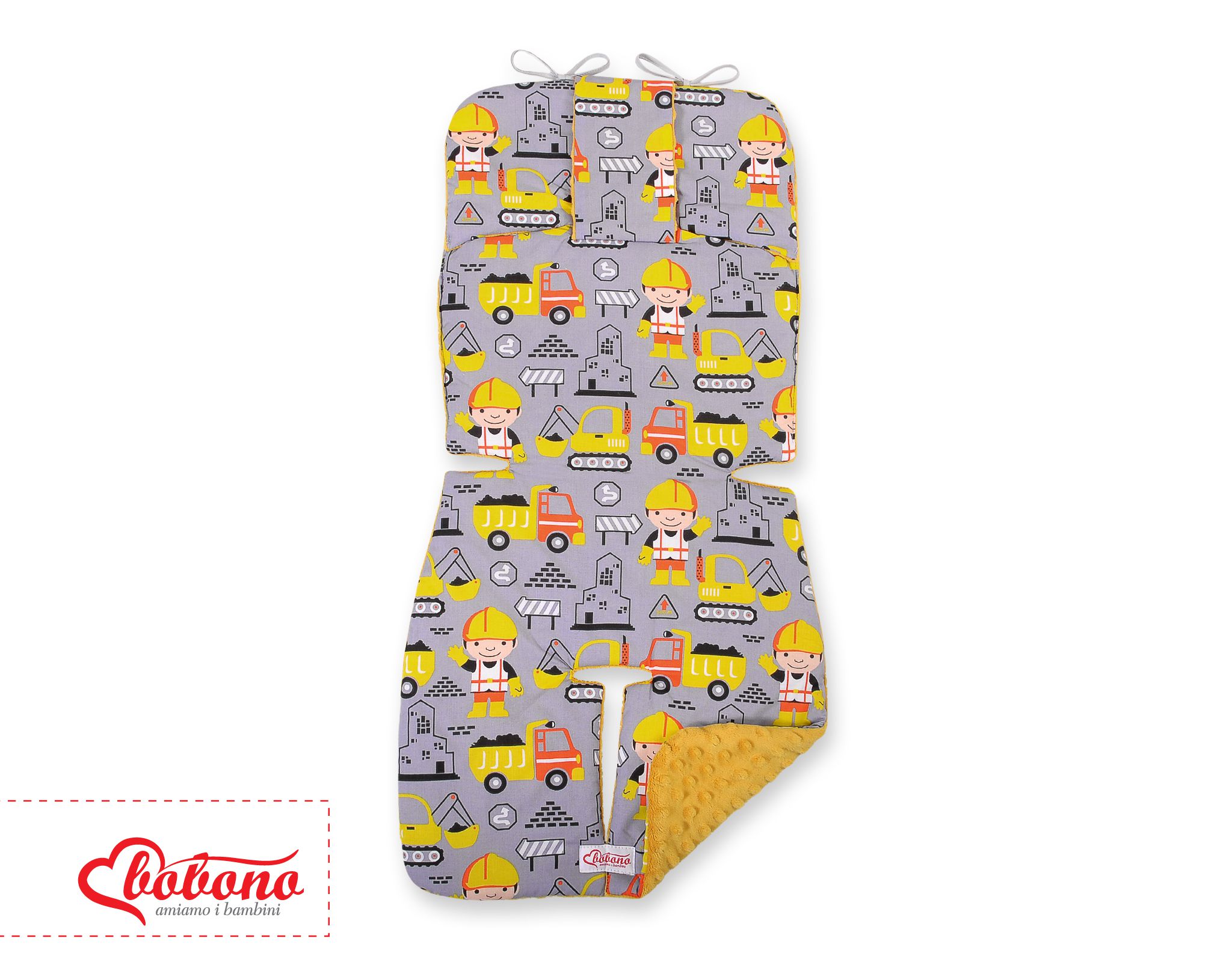 Etusivu » Lastenvaunut & Turvaistuimen Lisävarusteet » Kaksipuoleinen rattaan istuinpehmuste » Käännettävä rattaan istuinpehmuste Keltainen Kaivurit Hunaja
