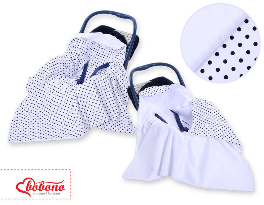 Ihanan pörheä ja lämmin kaksipuoleinen viltti auton turvaistuimeen. Suojaa lasta paleltumiselta moitteetta.