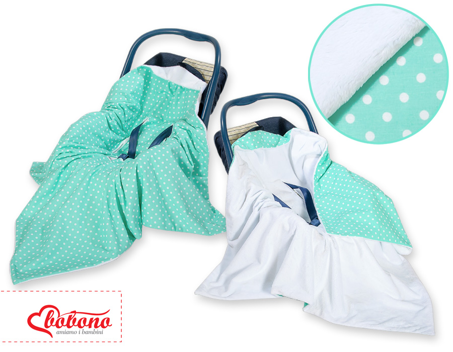 Etusivu » Lastenvaunut & Turvaistuimen Lisävarusteet » Wendedecke für Kindersitz » Käännettävä viltti turvaistuimeen Minttu Valkoisilla Pilkuilla
