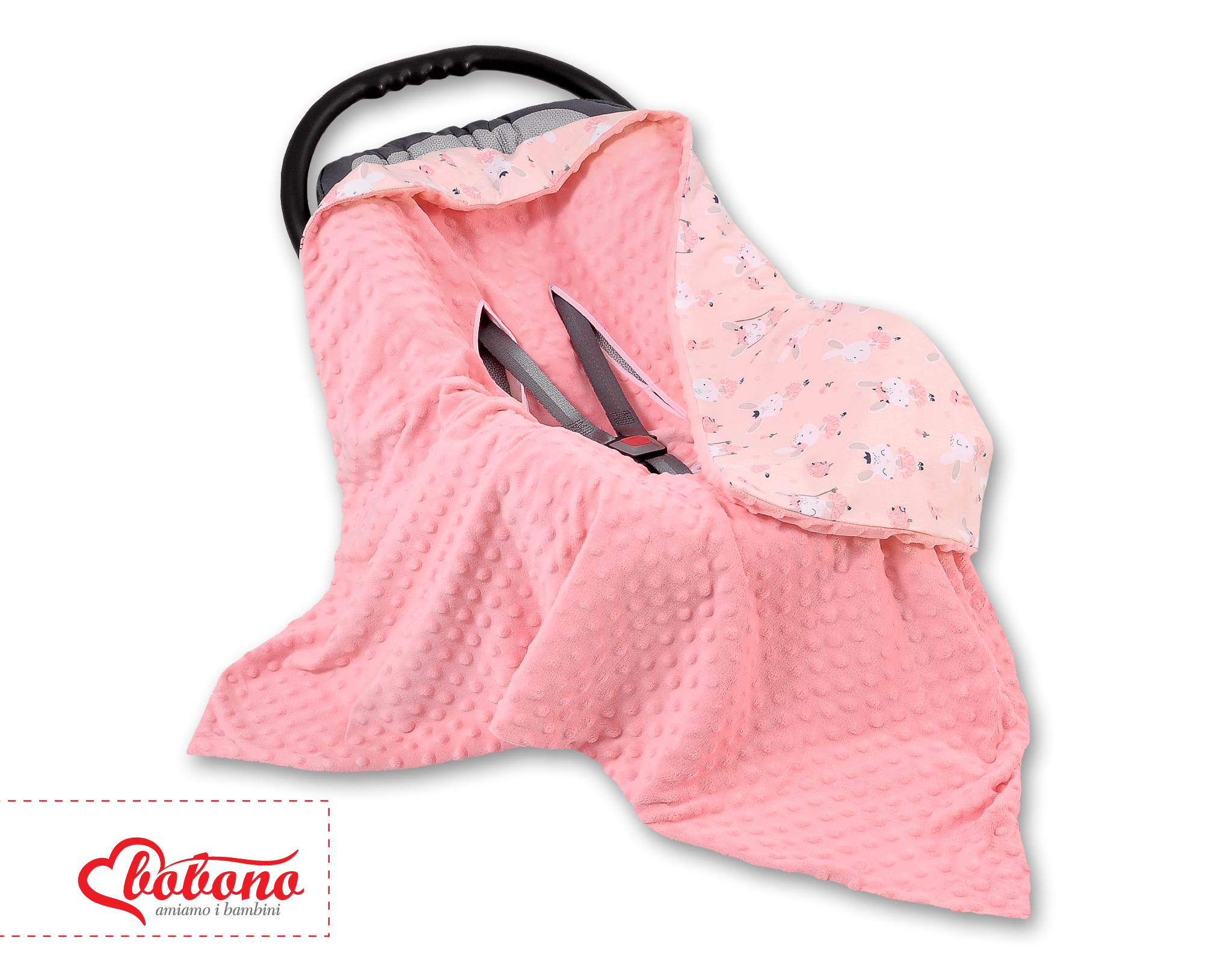 Ihanan pörheä ja lämmin kaksipuoleinen viltti auton turvaistuimeen. Suojaa lasta paleltumiselta moitteetta.