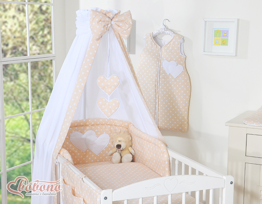 Katosverho pinnasänkyyn - Hanging Hearts  Beige Valkoisilla Pilkuilla PuuvillaKatosverho pinnasänkyyn - Hanging Hearts  Beige Valkoisilla Pilkuilla Puuvilla