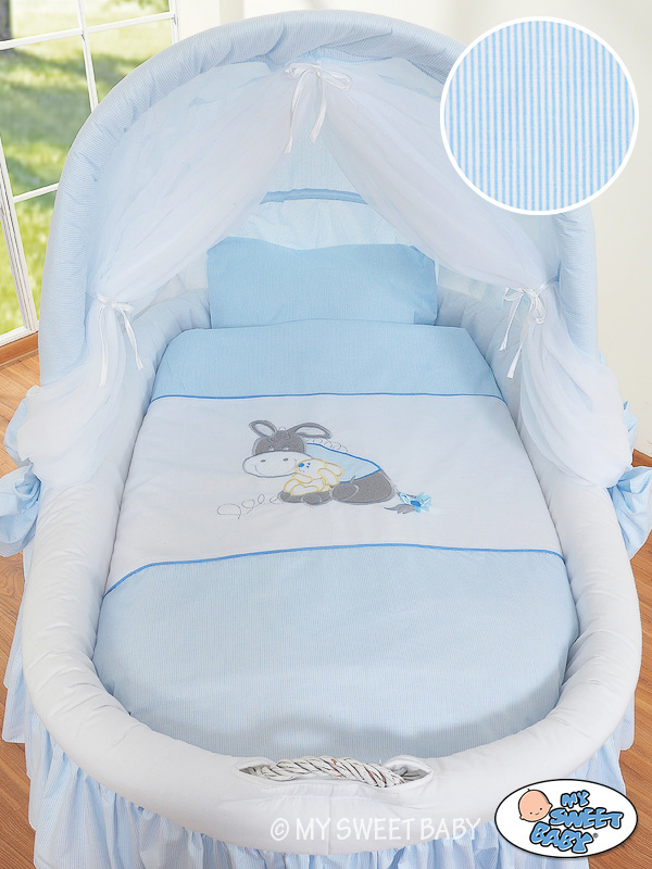 - Koreissa mukana fleece-pehmusteet, jotka on suojattu puuvillakankaalla. Nukuta vauva ihanan pehmeään koriin.