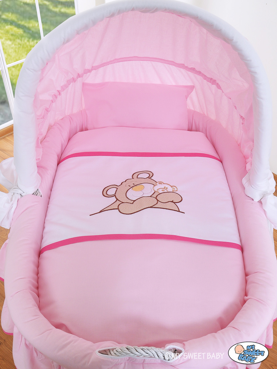 - Koreissa mukana fleece-pehmusteet, jotka on suojattu puuvillakankaalla. Nukuta vauva ihanan pehmeään koriin.