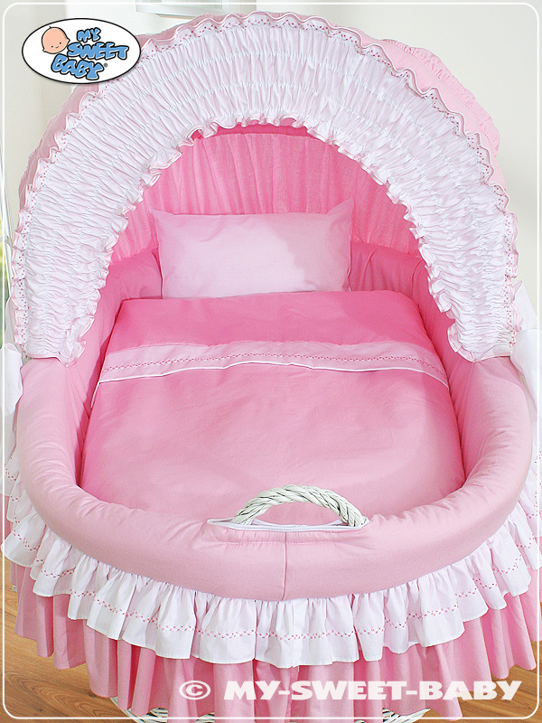 - Koreissa mukana fleece-pehmusteet, jotka on suojattu puuvillakankaalla. Nukuta vauva ihanan pehmeään koriin.
