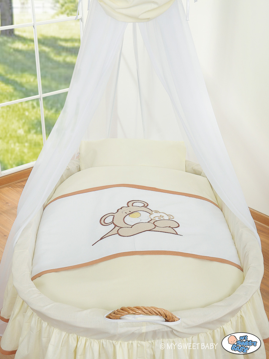 - Settiin kuuluu kehdon pehmusteet ja kaunis verho, kuten kuvassa.