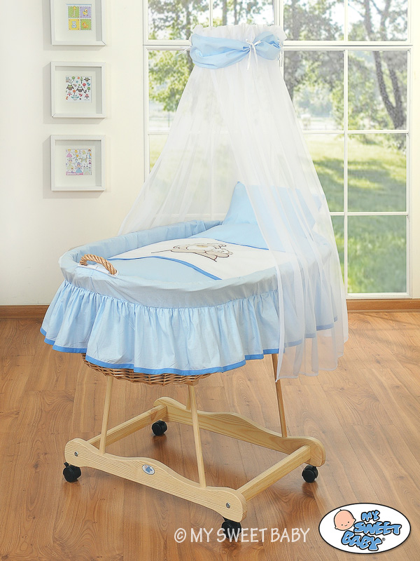 Kehdossa on kaunis ja autenttinen, tilava kori. Puuosat ja kori ihanan luonnollisen puun väriset.