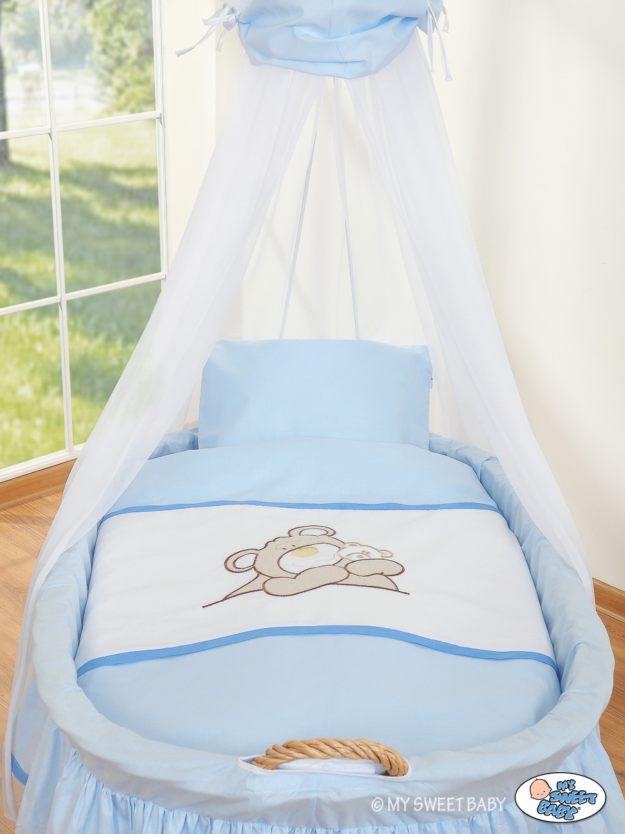 - Settiin kuuluu kehdon pehmusteet ja kaunis verho, kuten kuvassa.