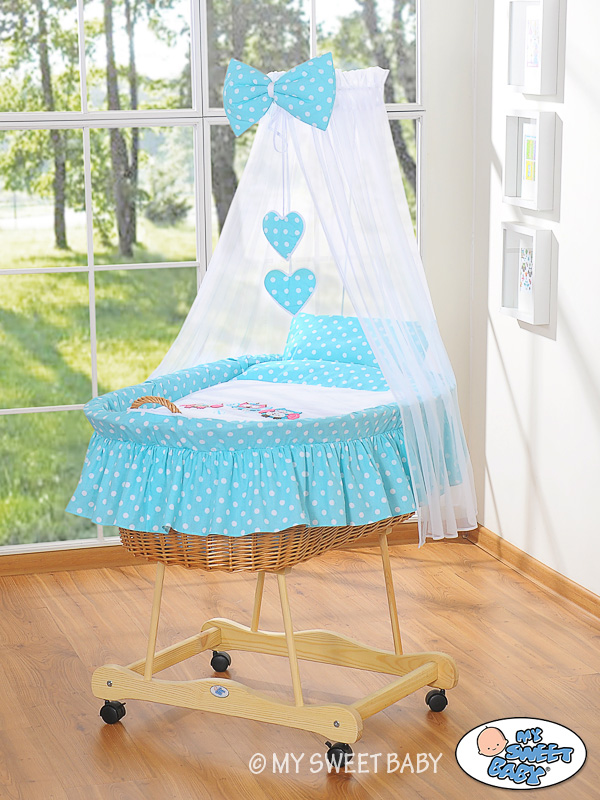 Etusivu » Vauvankori » Vauvankori Katosverho » Vauvankori Katosverho Pienillä Pyörillä » Kehto pyörillä ja prinsessaverholla Turkoosi
