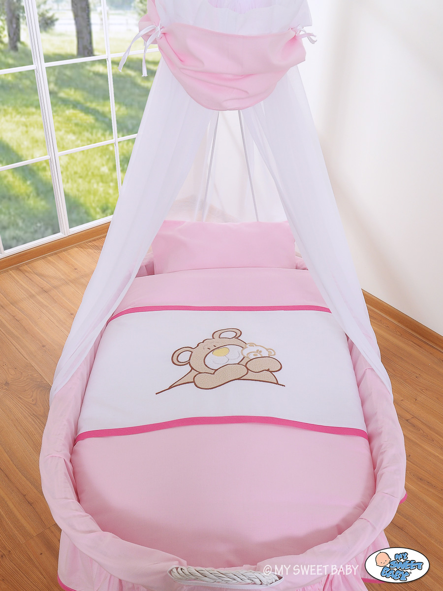 - Settiin kuuluu kehdon pehmusteet ja kaunis verho, kuten kuvassa.