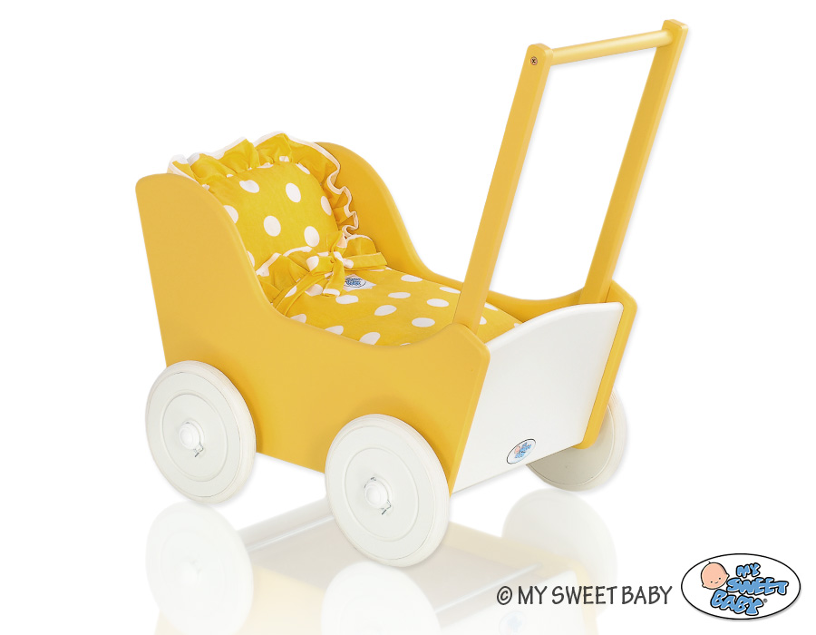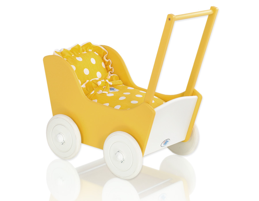 Etusivu » Lelut » Nukenvaunut » Puiset Nukenvaunut » Keltainen puiset nukenvaunut » Keltainen Puinen leluvaunu Valkoinen Keltainen
