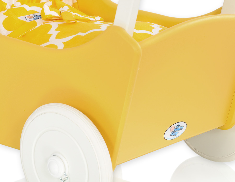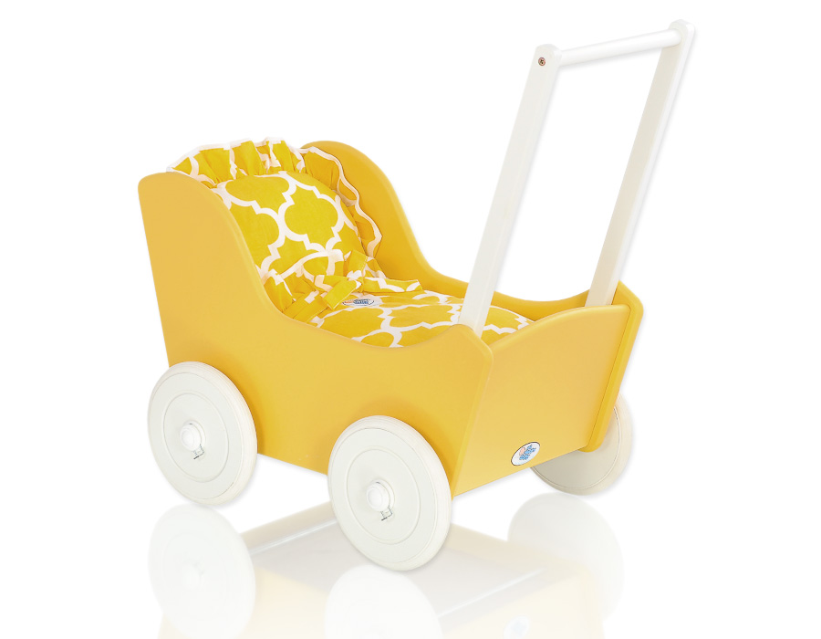 Etusivu » Lelut » Nukenvaunut » Puiset Nukenvaunut » Keltainen puiset nukenvaunut » Keltainen Puinen leluvaunu Valkoinen Keltainen