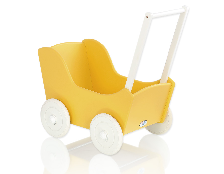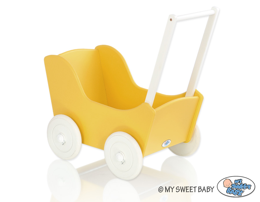 Keltainen Puiset nuken vaunutKeltainen Puiset nuken vaunut