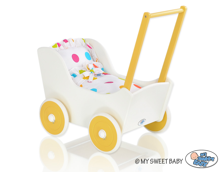 Keltainen Puiset nuken vaunut (Valko-Keltainen) Valkoinen Keltainen