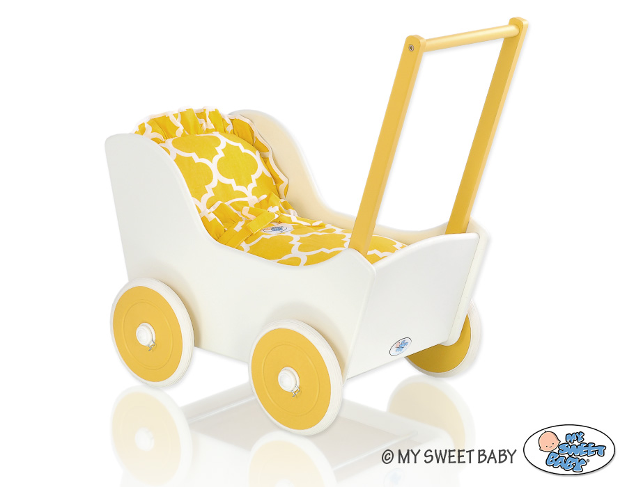 Keltainen Puiset nuken vaunut (Valko-Keltainen) Valkoinen Keltainen