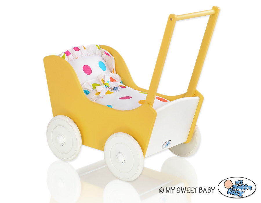Keltainen Puiset nuken vaunut (Valko-Keltainen) Valkoinen Keltainen