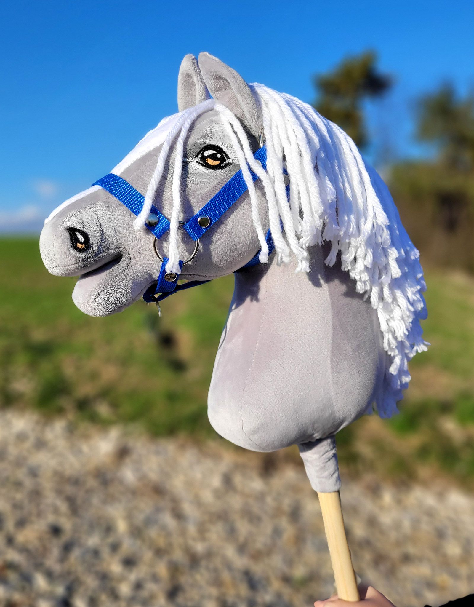 Tämä keppihevonen on ommeltu käsin, realistisesti muotoiltu ja yksityiskohdat on maalattu ja varjostettu käsityönä. Pään koko vastaa A3-kokoa. Kestävä sisärakenne tekee keppihevosesta vakaan ja helposti käsiteltävän – se ei väänny eikä huoju leikeissä.