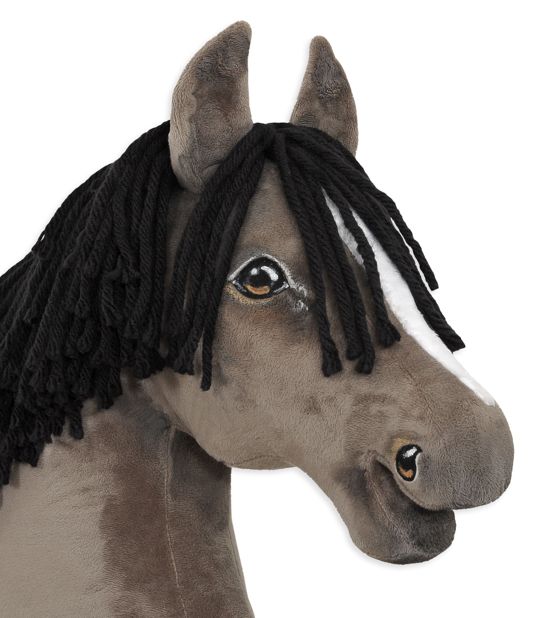 Tämä keppihevonen on ommeltu käsin, realistisesti muotoiltu ja yksityiskohdat on maalattu ja varjostettu käsityönä. Pään koko vastaa A3-kokoa. Kestävä sisärakenne tekee keppihevosesta vakaan ja helposti käsiteltävän – se ei väänny eikä huoju leikeissä.