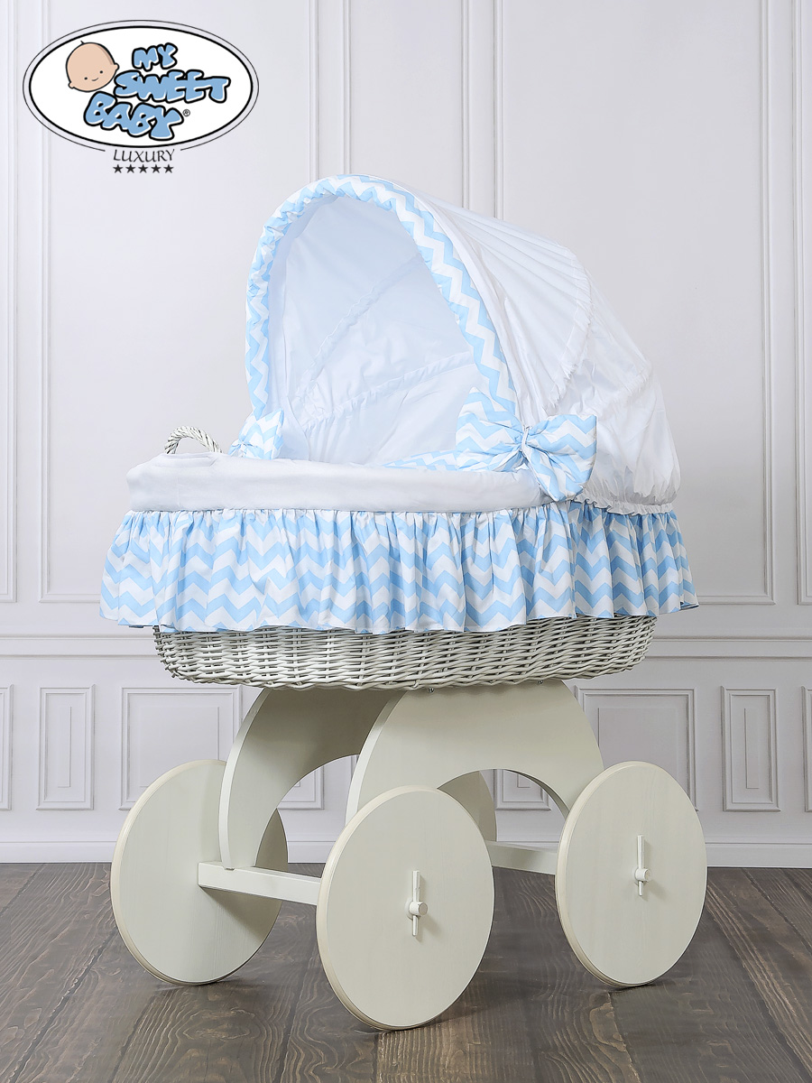 Etusivu » Vauvankori » Vauvankori My Sweet Baby Luxury » Vauvankori hupulla » Vauvankori hupulla » Korikehto kuvulla ja pyörillä Valkoinen Sininen Hannah
