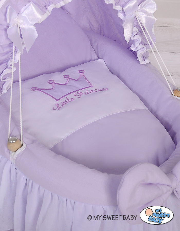 My Sweet Baby -korikehdot nukeille ovat erittäin korkealaatuisia ja mahtavia tuotteita lasten käyttöön. Korit ovat punottua pajunvitsaa ja runko puuta, romanttisissa väreissä. Jokainen yksityiskohta on kauniisti ja tarkasti toteutettu käsityönä. Koristetekstiili valuu kauniisti lattiaan saakka, ihanat röyhelöt ja kaiken kukkuraksi suuri kruunu "Little Princess" -tekstillä luo prinsessamaisen tunnelman. Sopii täydellisesti pikkuiselle tytölle (tai miksei pojallekin!).