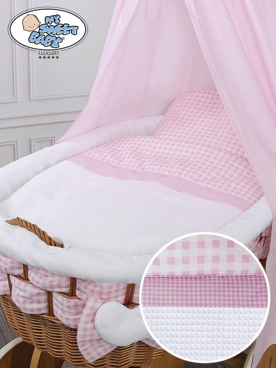 - Koreissa mukana fleece-pehmusteet, jotka on suojattu puuvillakankaalla. Nukuta vauva ihanan pehmeään koriin.
