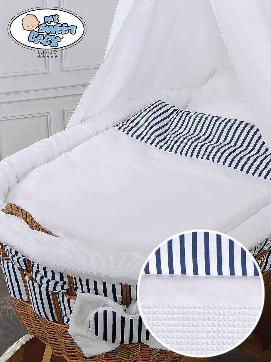 - Koreissa mukana fleece-pehmusteet, jotka on suojattu puuvillakankaalla. Nukuta vauva ihanan pehmeään koriin.