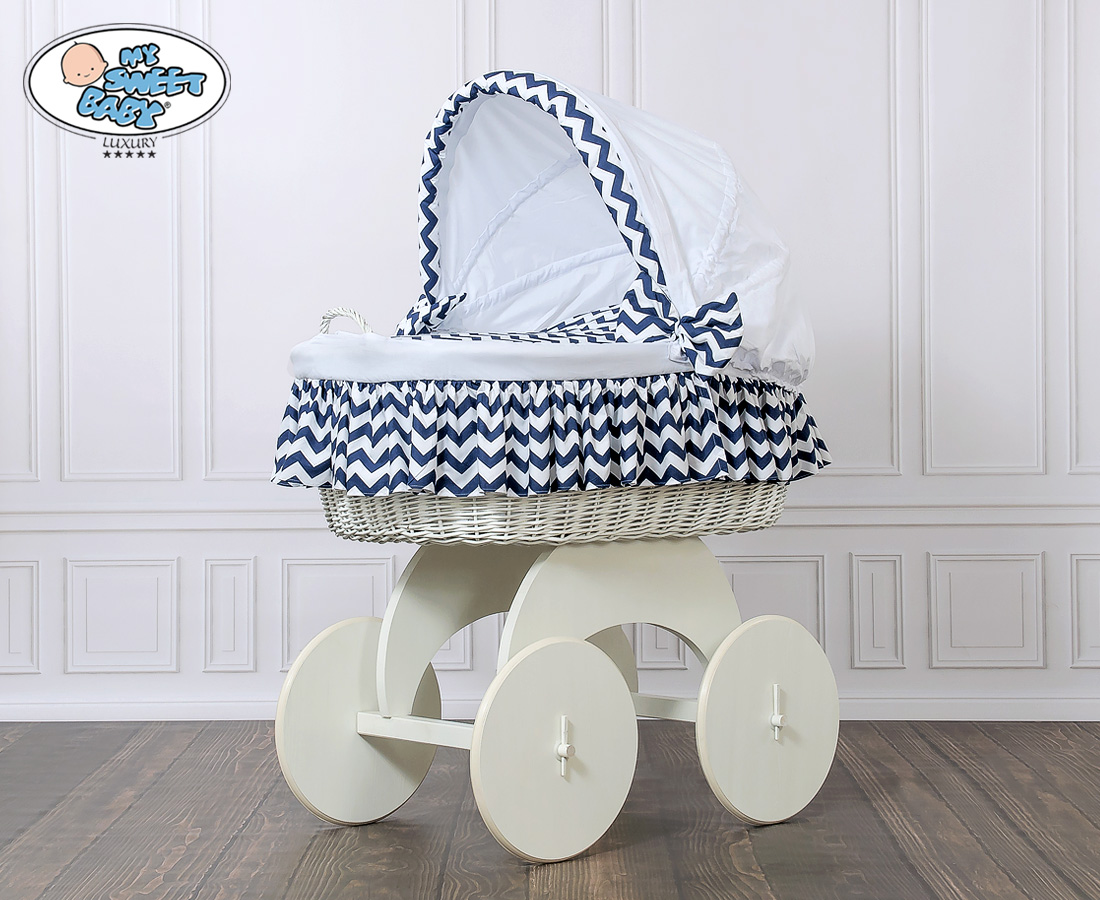 Etusivu » Vauvankori » Vauvankori My Sweet Baby Luxury » Vauvankori hupulla » Vauvankori hupulla » Korikehto pyörillä Valkoinen Laivastonsininen Hannah