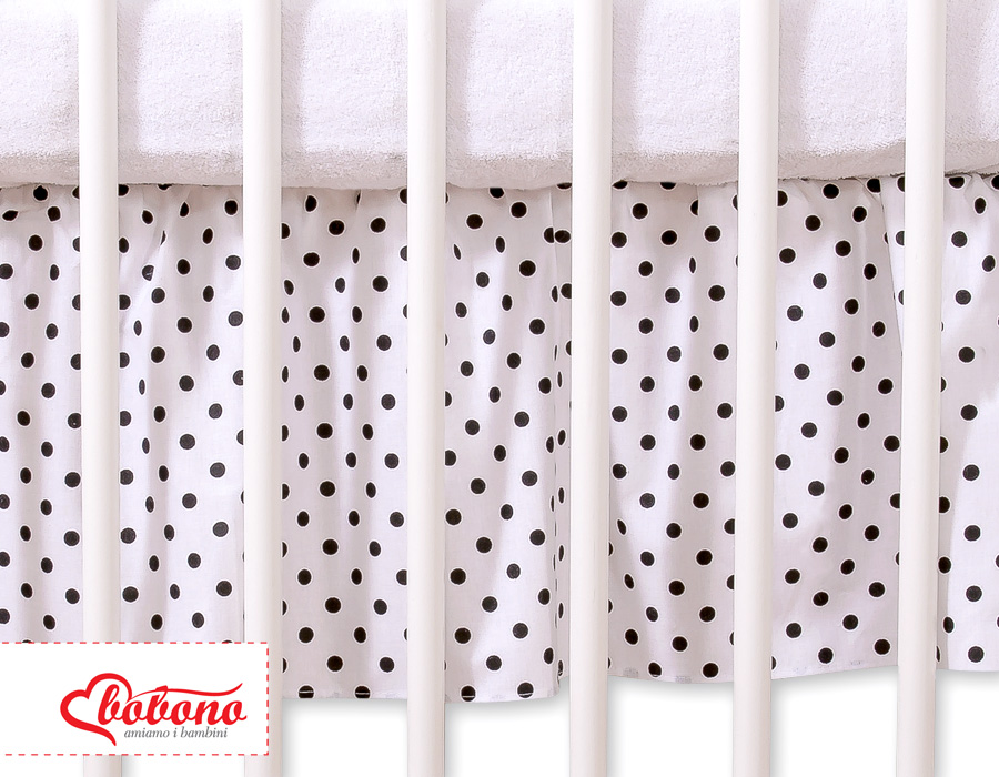 Koristeellinen röyhelöreunus pinnasänkyyn 120x60cm - Hanging Hearts Beige Valkoisilla Pilkuilla21.75 €