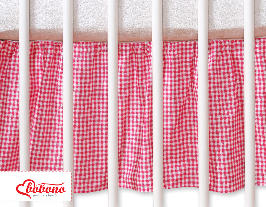 Koristeellinen röyhelöreunus pinnasänkyyn 140x70cm - Hanging Hearts Vaaleanpunainen RuutukuvioKoristeellinen röyhelöreunus pinnasänkyyn 140x70cm - Hanging Hearts Vaaleanpunainen Ruutukuvio