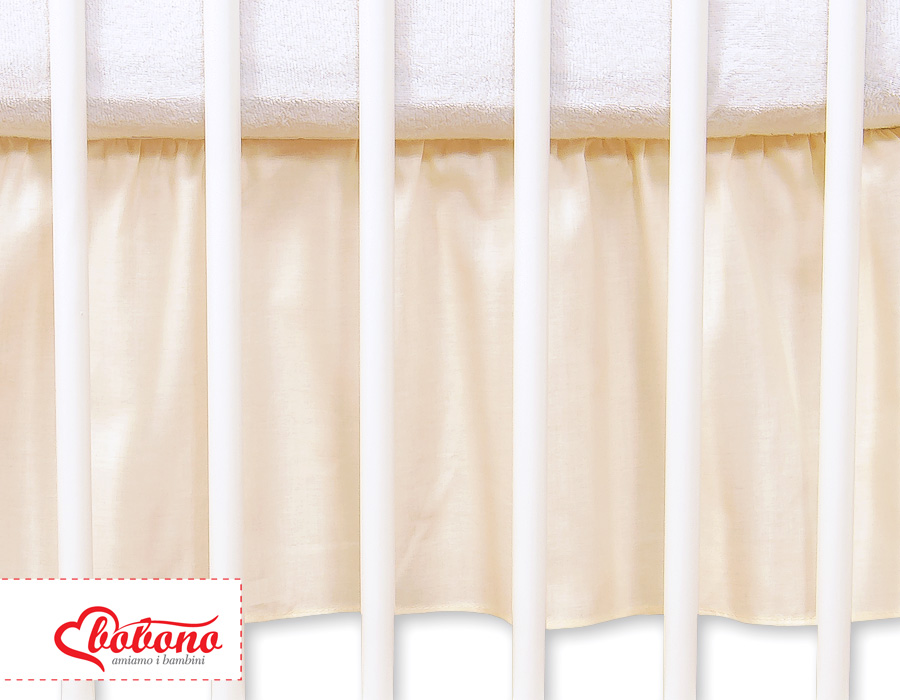 Erityinen koristereunus pinnasänkyihin. Röyhelöreunus 60x120cm, 100% puuvillaa.