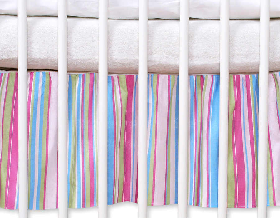 Erityinen koristereunus pinnasänkyihin. Röyhelöreunus 60x120cm, 100% puuvillaa.