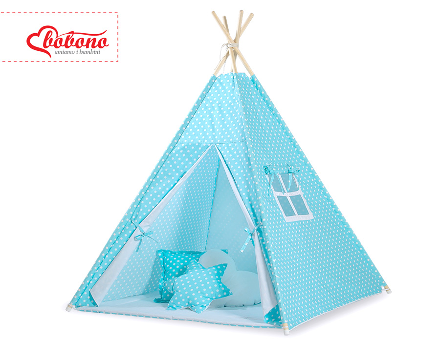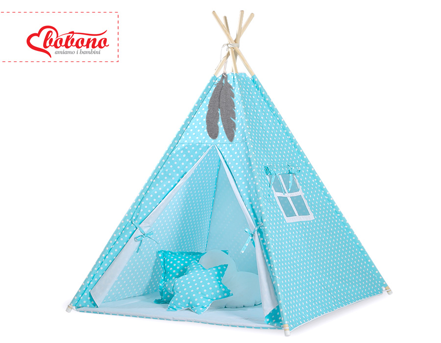 Etusivu » Lelut » Lasten Tiipii-teltat » Lasten Tiipii-teltta » Lasten Tiipii + koristehöyhenet Turkoosi Valkoisilla Pilkuilla