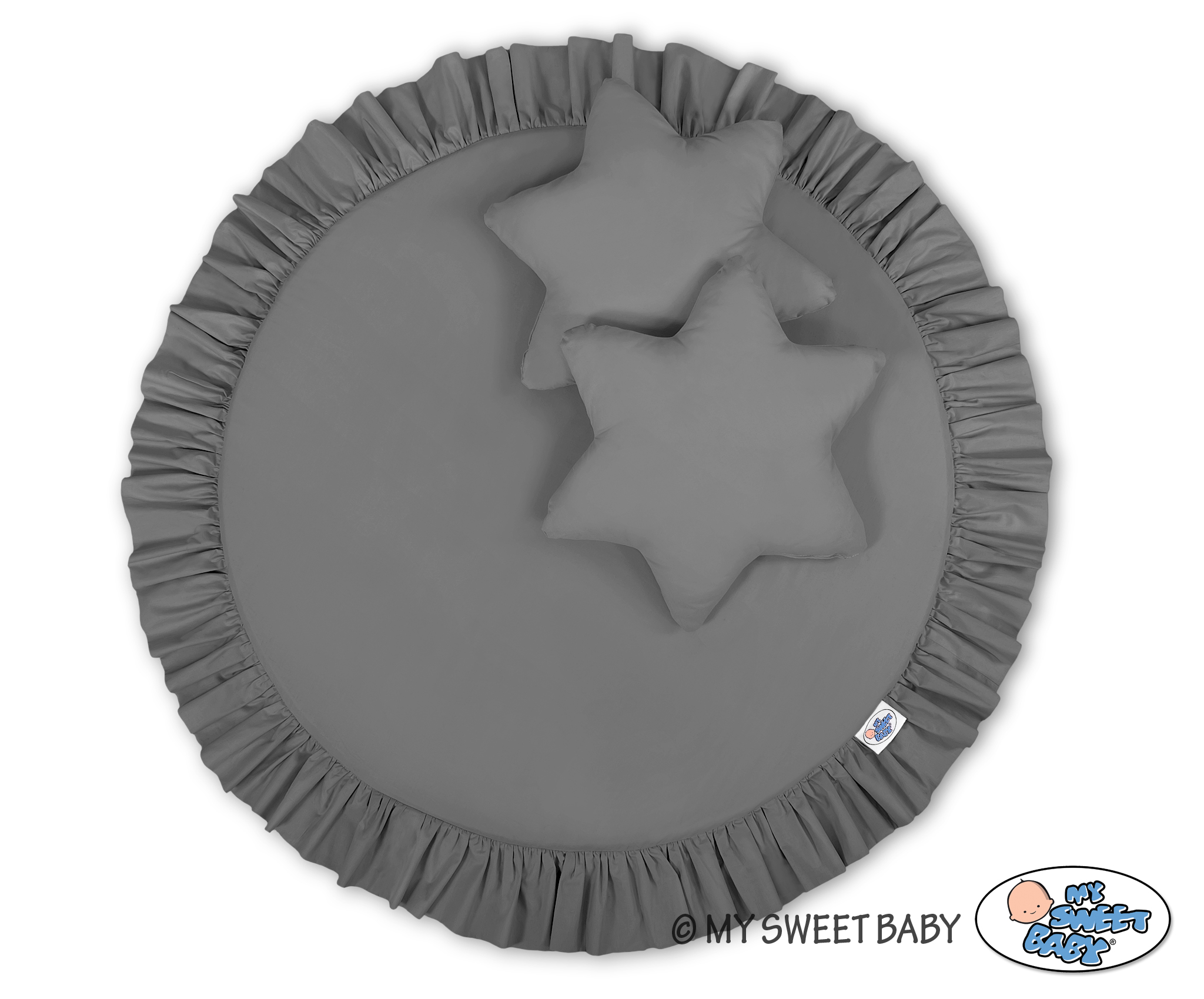 Leikkimatto röyhelöreunuksella. Sopii käytettäväksi mattona, leikkimattona tai suuren prinsessakatoksen matoksi. Sopii vauvan ensihetkistä lähtien makuualustaksi, temmellysalustaksi vauvan harjoitellessa mahallaan oloa, tai muuten leikkimattona. Pehmeä täyte eristää täysin kylmän ja kovan lattian. Maton päällinen on 100% Okotex-sertifioitua puuvillaa. Matto on tehty anti-allergisista ja nykyaikaisista sertifioiduista materiaaleista. Päällyksen saa irti matusta pesua varten.