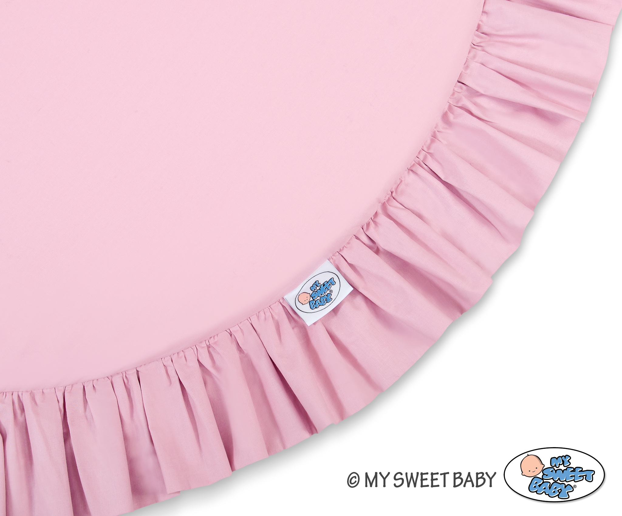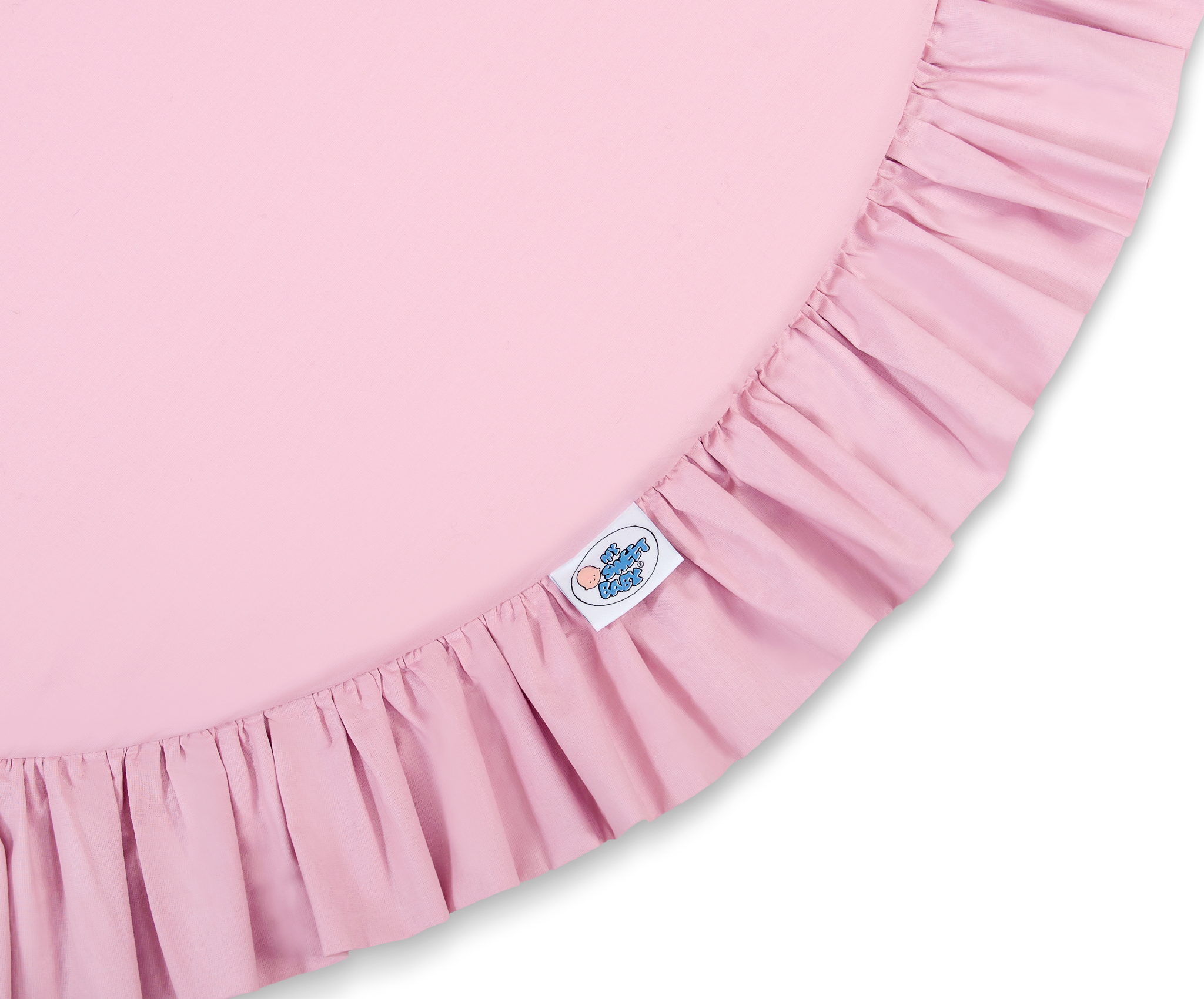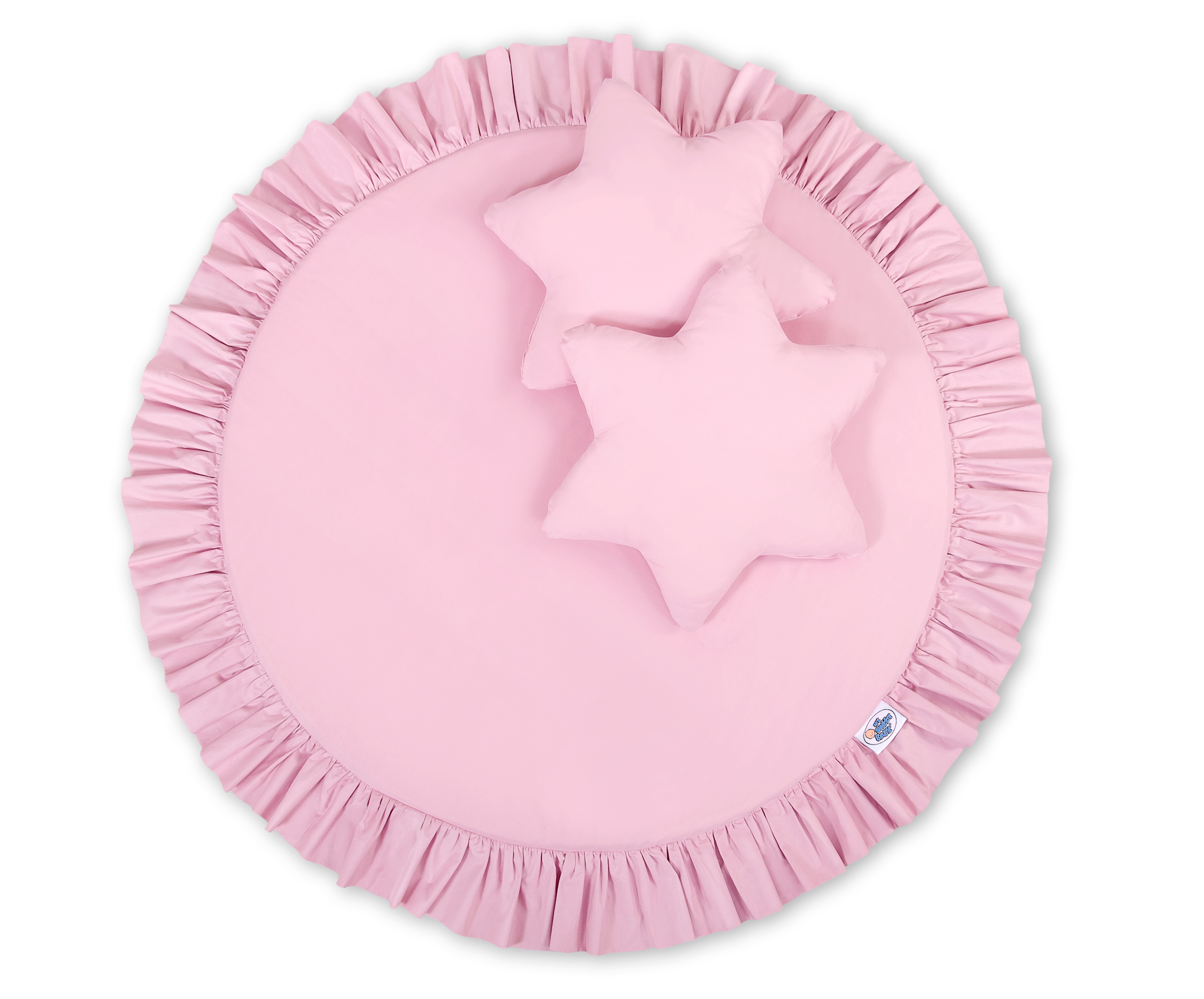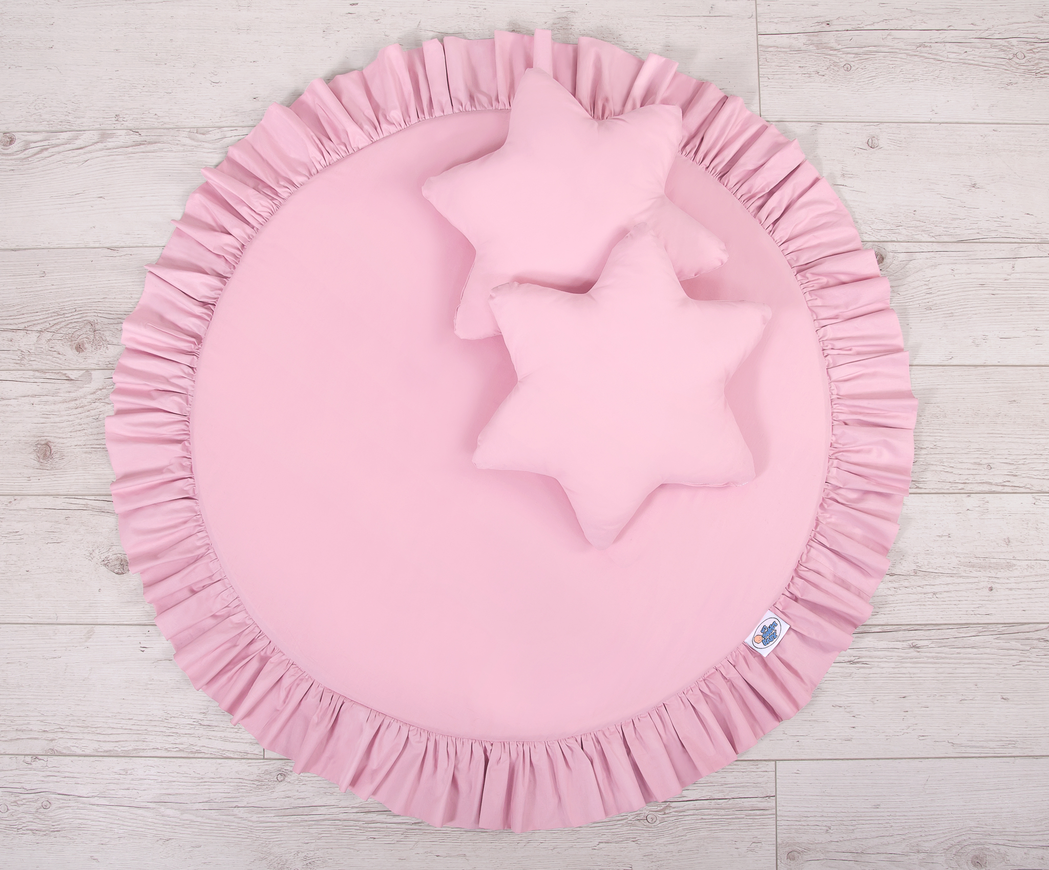 Leikkimatto röyhelöreunuksella. Sopii käytettäväksi mattona, leikkimattona tai suuren prinsessakatoksen matoksi. Sopii vauvan ensihetkistä lähtien makuualustaksi, temmellysalustaksi vauvan harjoitellessa mahallaan oloa, tai muuten leikkimattona. Pehmeä täyte eristää täysin kylmän ja kovan lattian. Maton päällinen on 100% Okotex-sertifioitua puuvillaa. Matto on tehty anti-allergisista ja nykyaikaisista sertifioiduista materiaaleista. Päällyksen saa irti matusta pesua varten.