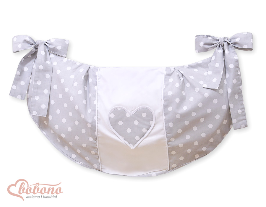 Etusivu » Vuodevaatesetit pinnasänkyyn » Vuodevaatesetit Sydämet » Lelupussi » Lelupussukka pinnasänkyyn - Hanging Hearts Harmaa Valkoisilla Pilkuilla