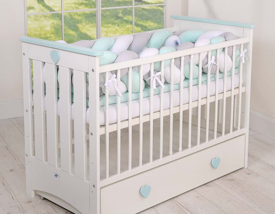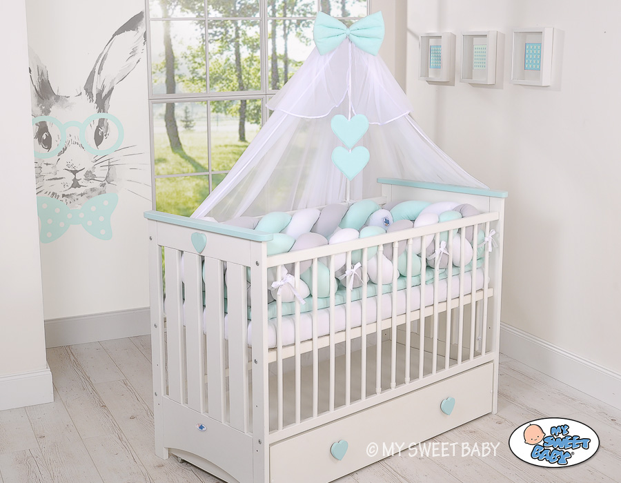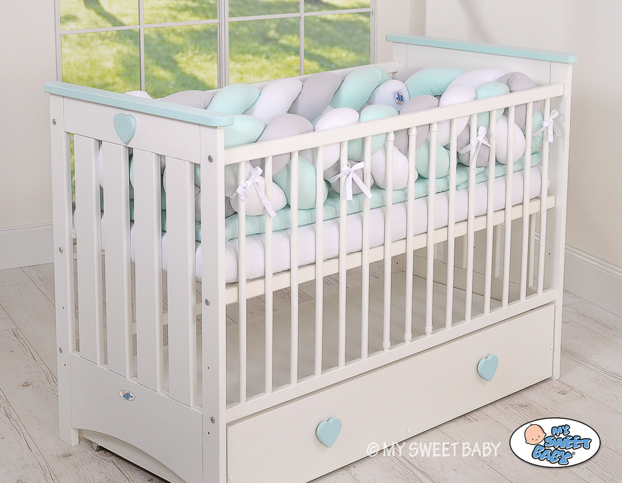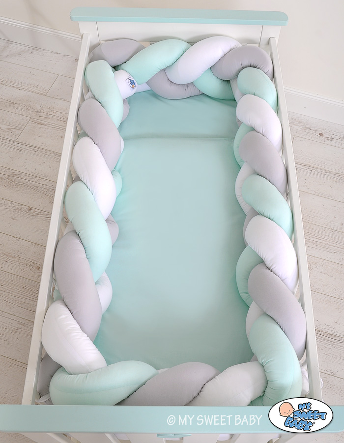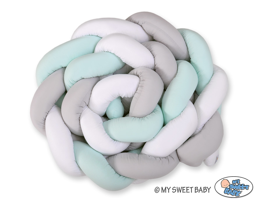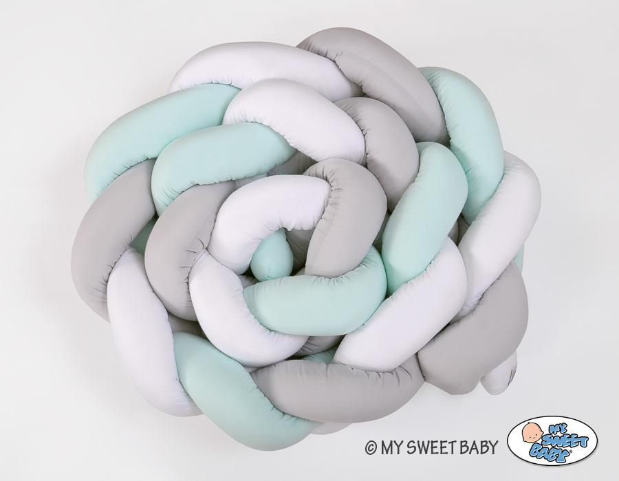 Etusivu » Letti kokoelma » Reunapehmuste Letti XXL » Letitetty reunapehmuste - Knot XXL Minttu Valkoinen Harmaa