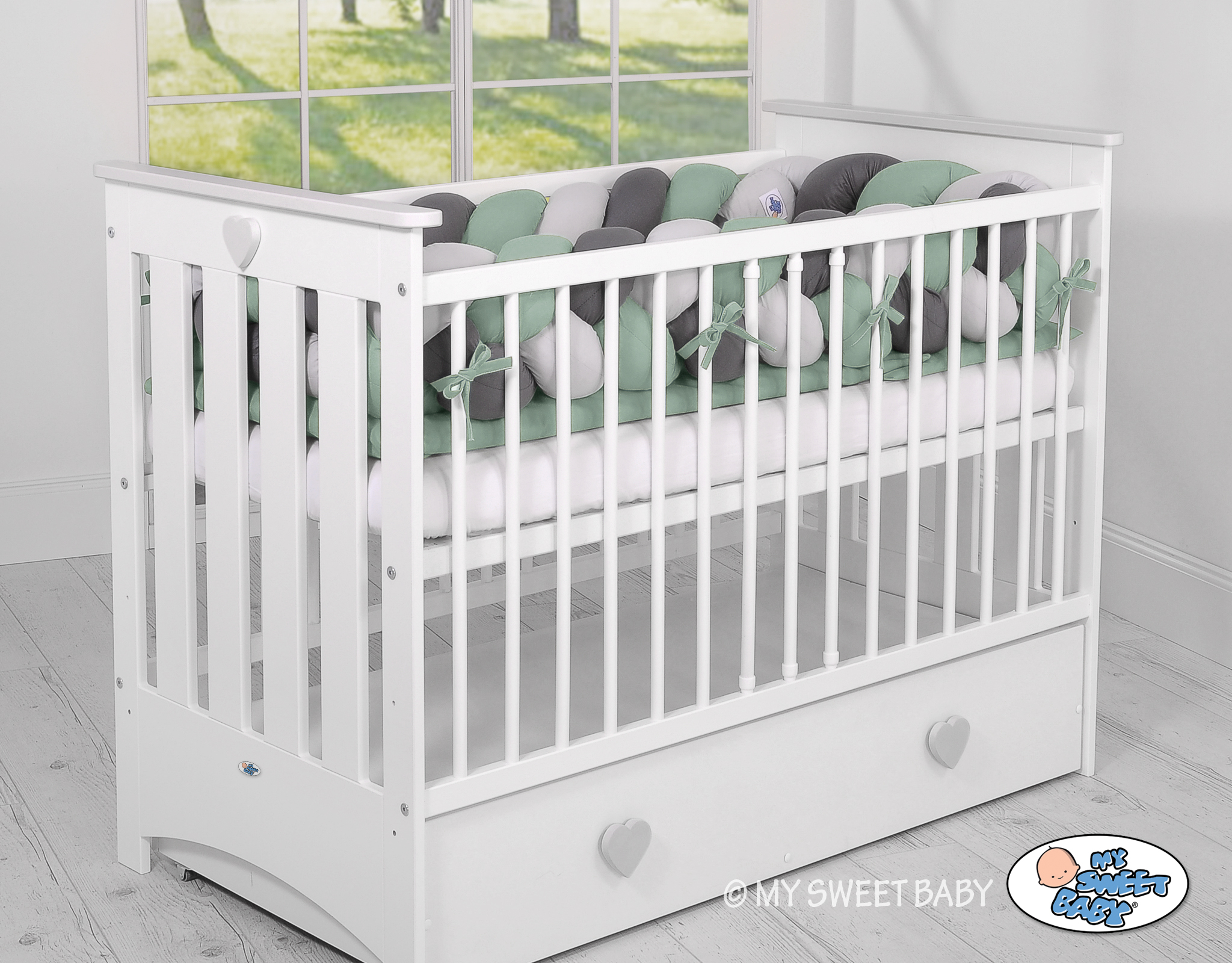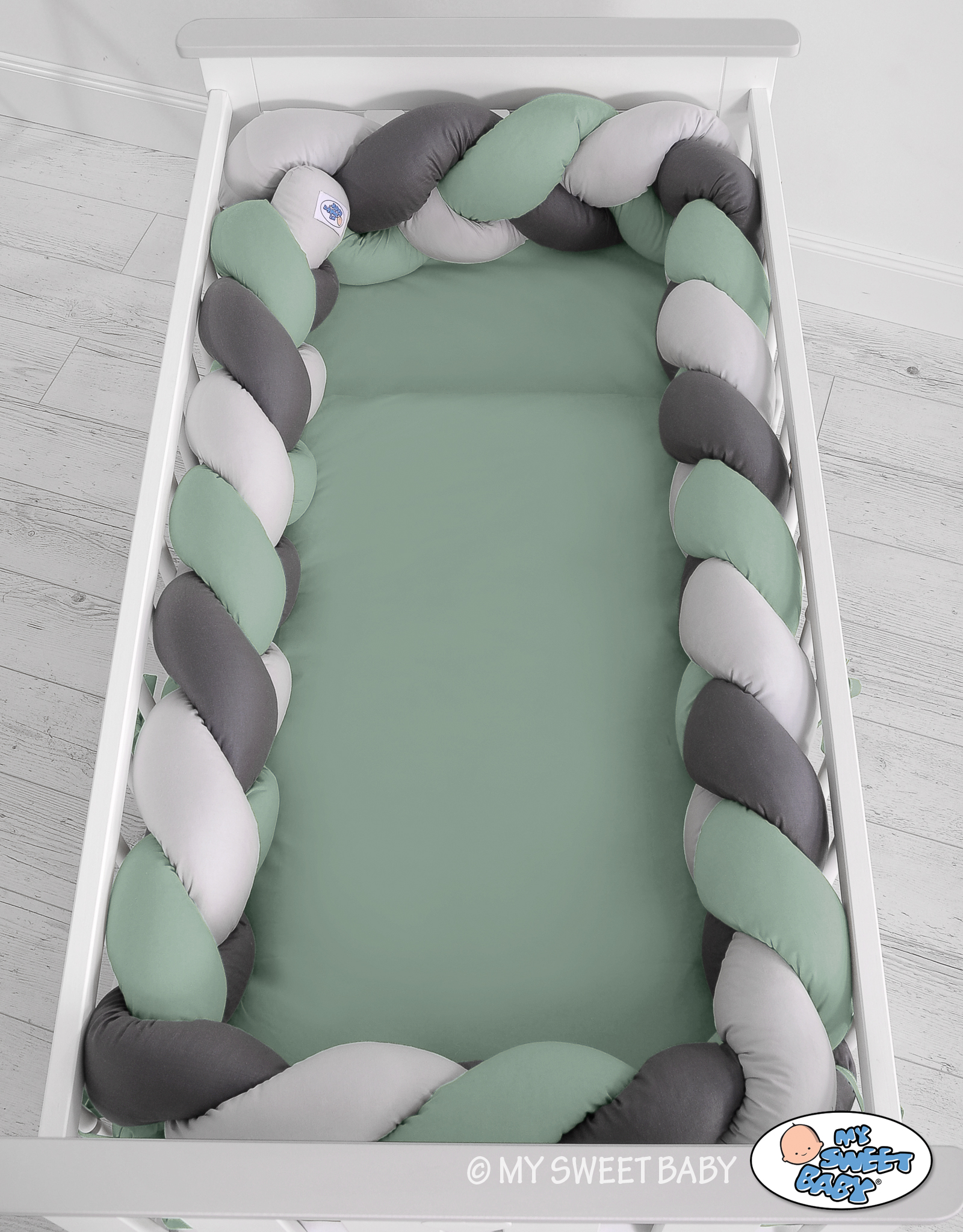 Etusivu » Letti kokoelma » Reunapehmuste Letti XXL » Letitetty reunapehmuste - Knot XXL pastellinvihreä-harmaa-antrasiitti