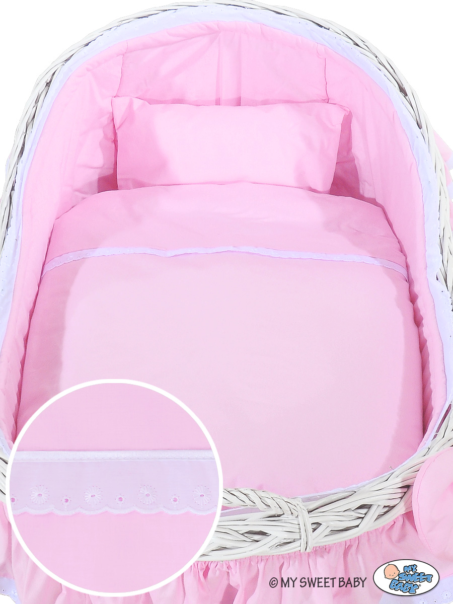 - Koreissa mukana fleece-pehmusteet, jotka on suojattu puuvillakankaalla. Nukuta vauva ihanan pehmeään koriin.