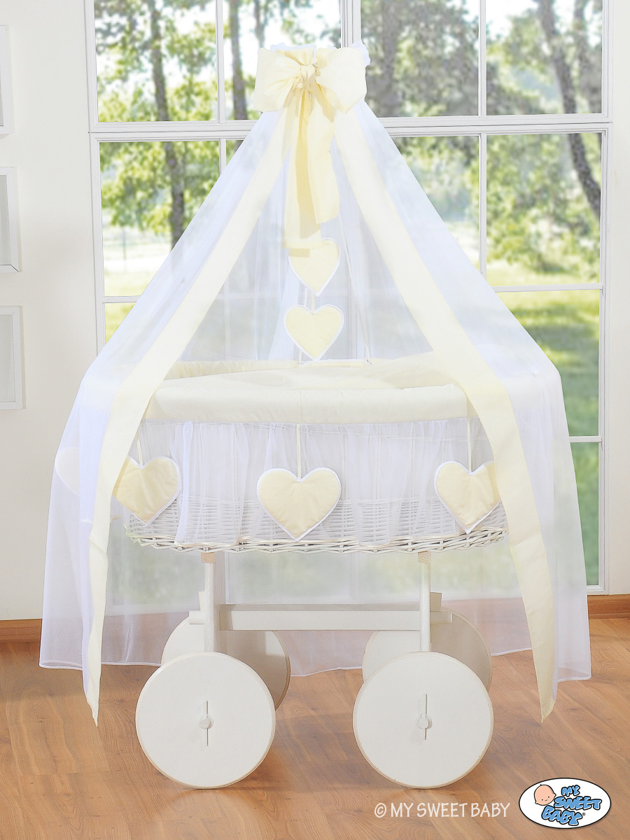 Etusivu » Vauvankori » Vauvan kori pyörillä ja katosverho » Vauvan kehto pyörillä » Liikuteltava kehto verholla Norsunluu Amelie