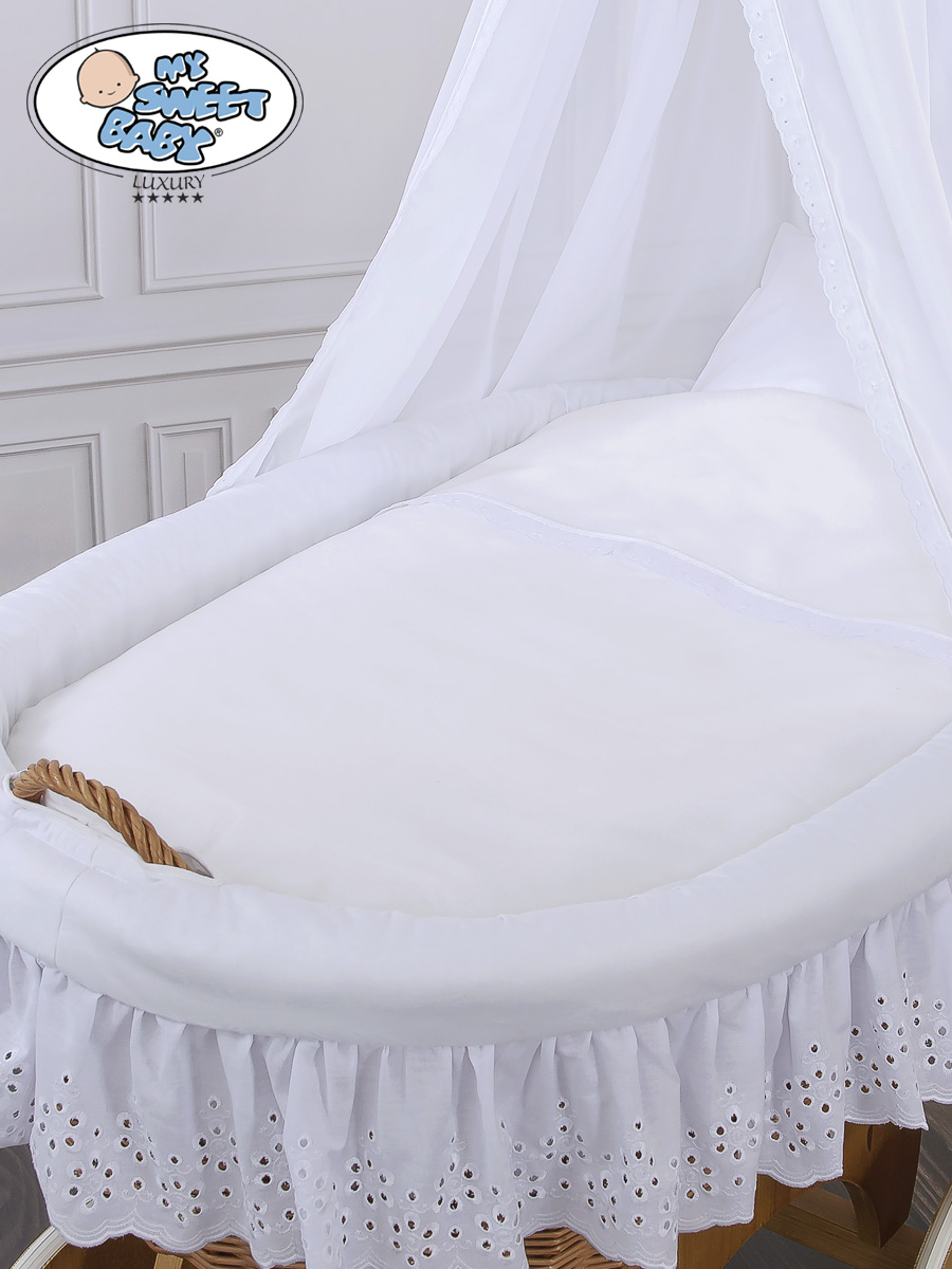 - Koreissa mukana fleece-pehmusteet, jotka on suojattu puuvillakankaalla. Nukuta vauva ihanan pehmeään koriin.