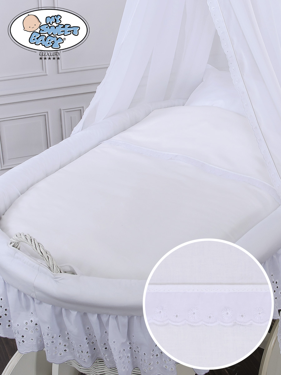 - Settiin kuuluu kehdon vuodevaatteet ja kaunis verho, kuten kuvassa.