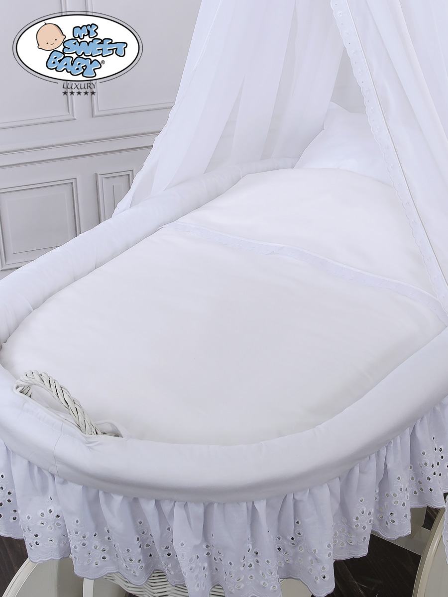 - Koreissa mukana fleece-pehmusteet, jotka on suojattu puuvillakankaalla. Nukuta vauva ihanan pehmeään koriin.