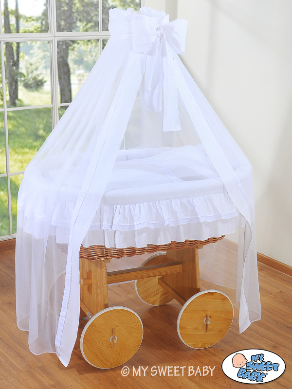 Etusivu » Vauvankori » Vauvan kori pyörillä ja katosverho » Vauvan kehto pyörillä » Liikuteltava kehto verholla Valkoinen Angel