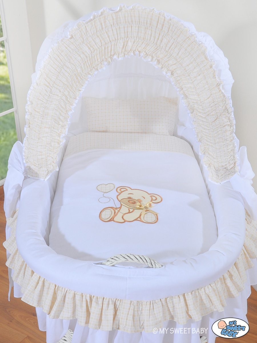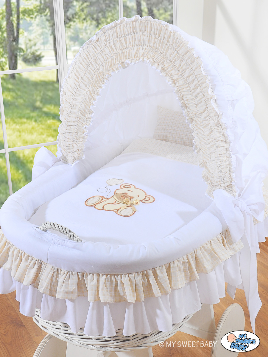 - Koreissa mukana fleece-pehmusteet, jotka on suojattu puuvillakankaalla. Nukuta vauva ihanan pehmeään koriin.